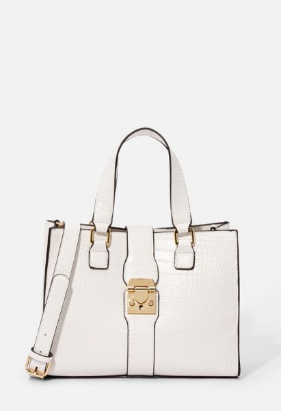 Material: Faux Leather Size: 11”L x 8.5”H x 5”D Hardware color: Gold Shoulder drop measurement : 5.5" Removable Adjustable Shoulder Strap: 20" Pockets: 1 interior pocket, 1 interior zip Closure: Turn lock
